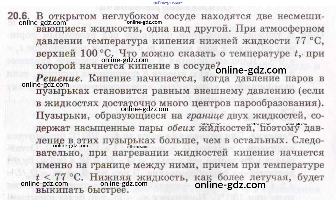 Готовые домашние задания по Физике за 10, 11 класс Задачник Гельфгат, Генденштейн Профильный уровень 2021 - 20. Насыщенные и ненасыщенные пары. Влажность воздуха 20.6
