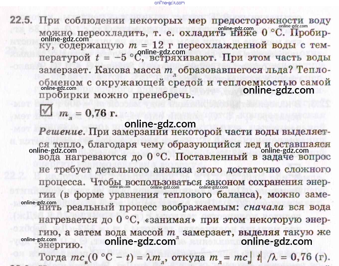Готовые домашние задания по Физике за 10, 11 класс Задачник Гельфгат, Генденштейн Профильный уровень 2021 - 22. Изменения агрегатных состояний вещества 22.5