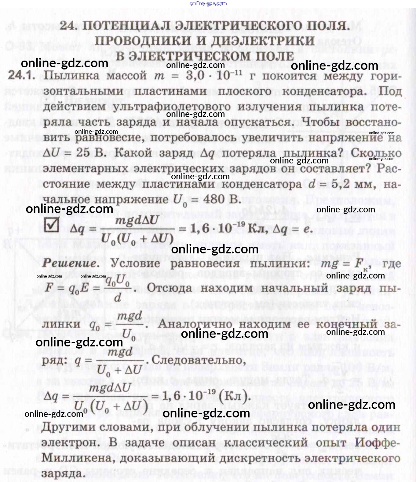 Готовые домашние задания по Физике за 10, 11 класс Задачник Гельфгат, Генденштейн Профильный уровень 2021 - 24. Потенциал электрического поля. Проводники и диэлектрики в электрическом поле 24.1