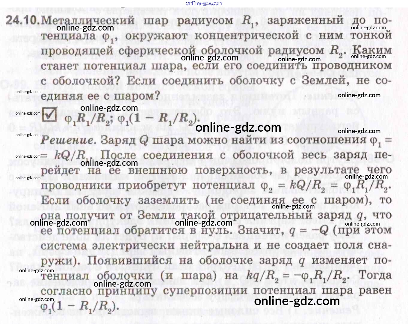 Готовые домашние задания по Физике за 10, 11 класс Задачник Гельфгат, Генденштейн Профильный уровень 2021 - 24. Потенциал электрического поля. Проводники и диэлектрики в электрическом поле 24.10