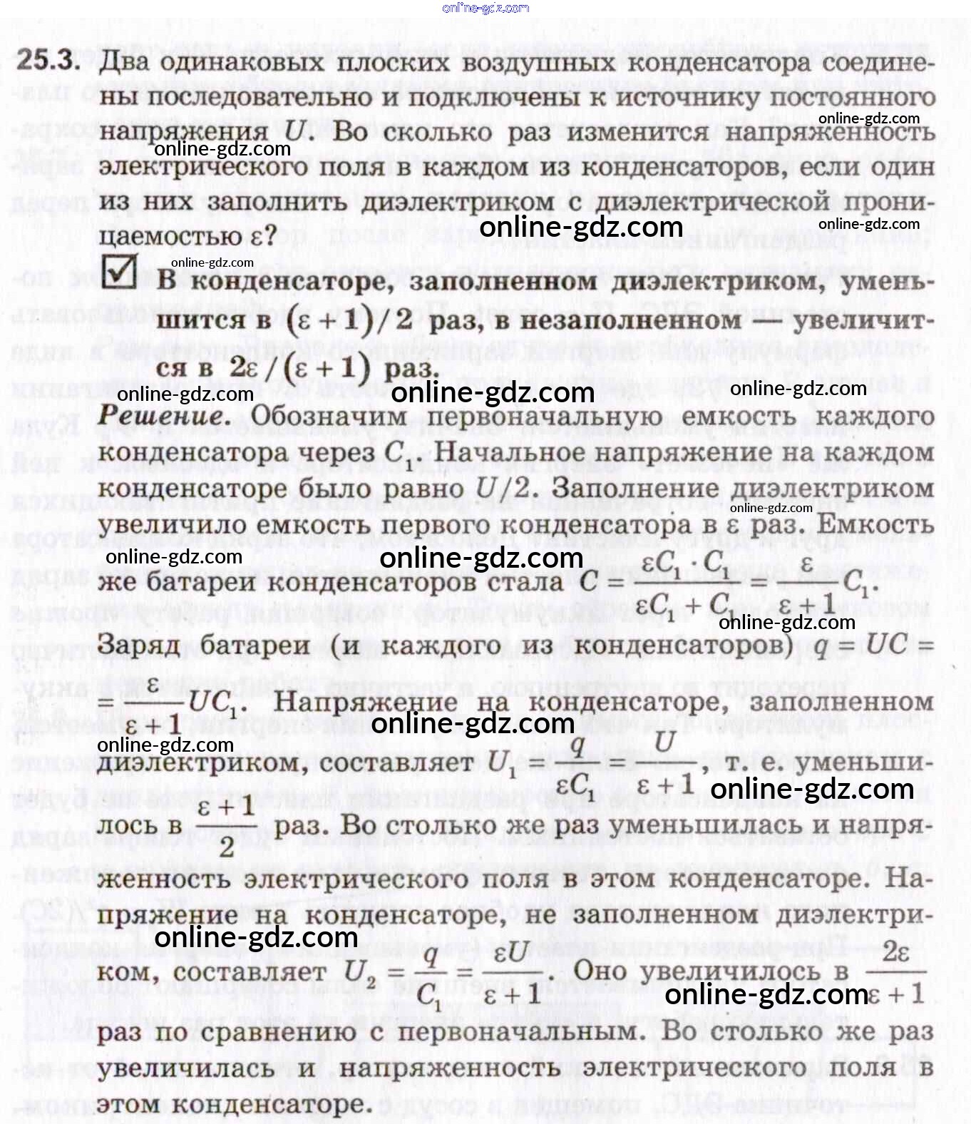 Готовые домашние задания по Физике за 10, 11 класс Задачник Гельфгат, Генденштейн Профильный уровень 2021 - 25. Электрическая емкость. Конденсатор. Энергия электрического поля 25.3