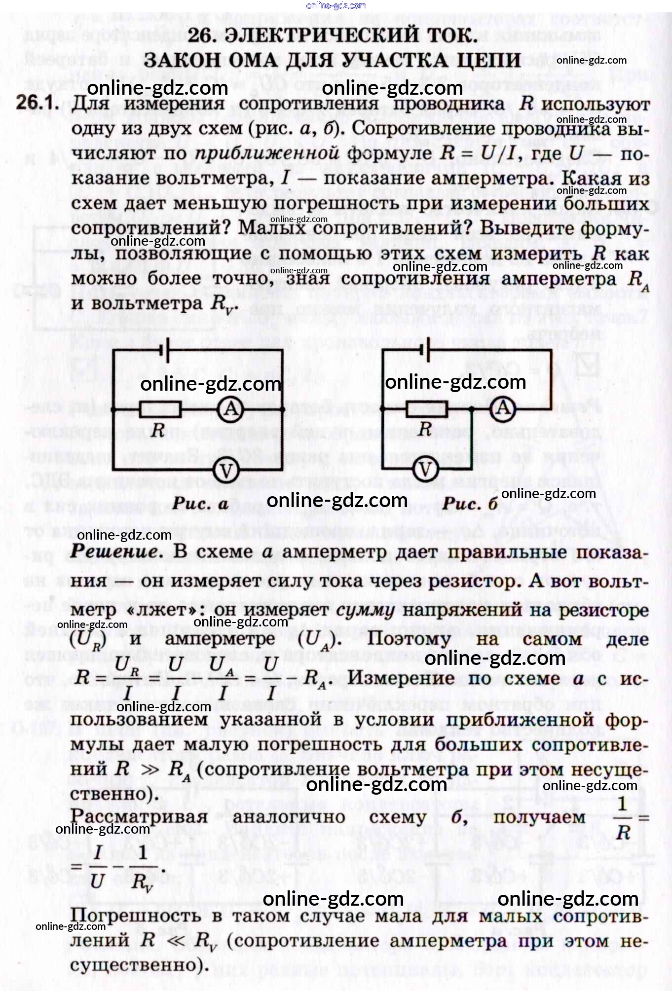 Готовые домашние задания по Физике за 10, 11 класс Задачник Гельфгат, Генденштейн Профильный уровень 2021 - 26. Электрический ток. Закон Ома для участка цепи 26.1