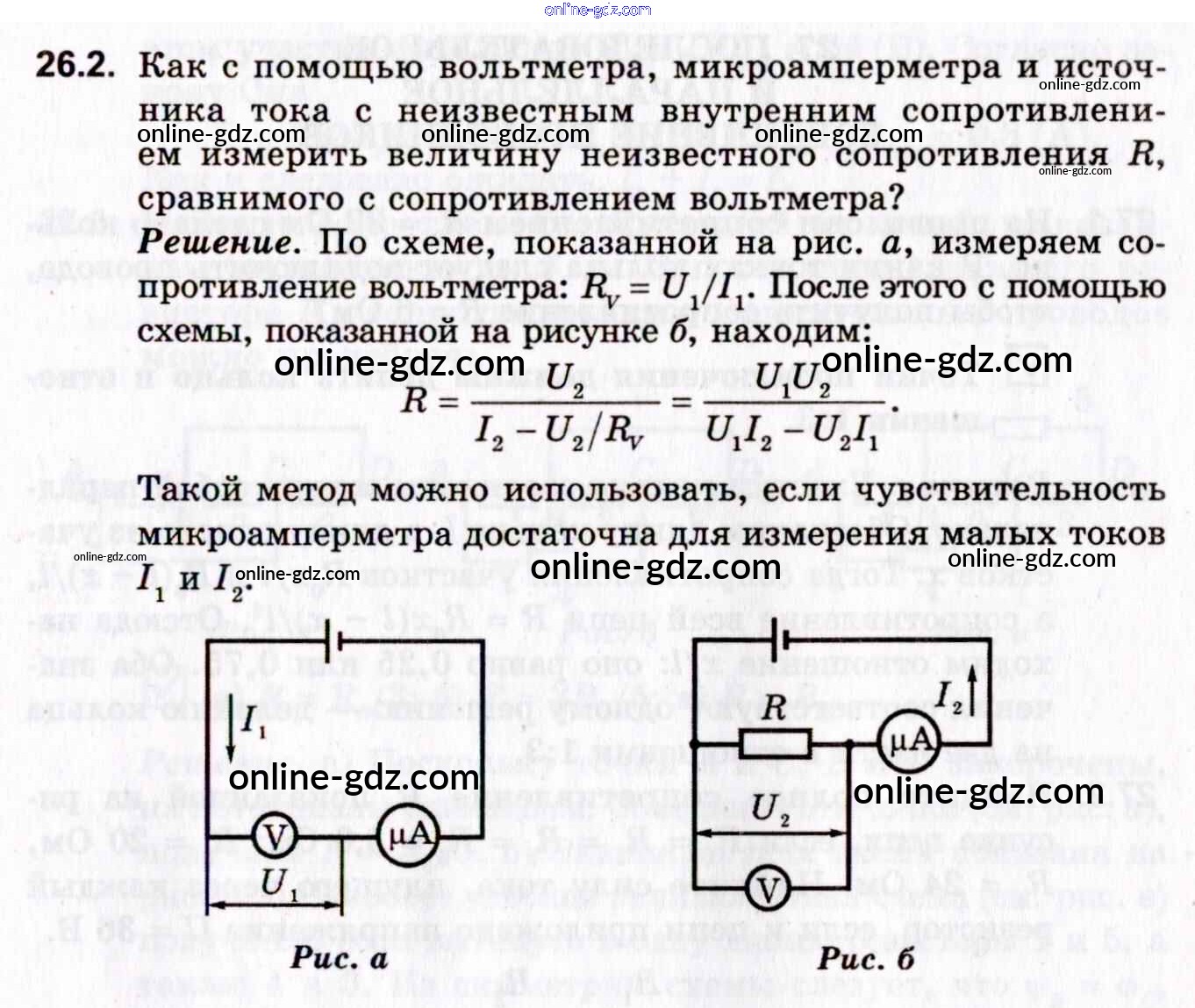 Готовые домашние задания по Физике за 10, 11 класс Задачник Гельфгат, Генденштейн Профильный уровень 2021 - 26. Электрический ток. Закон Ома для участка цепи 26.2