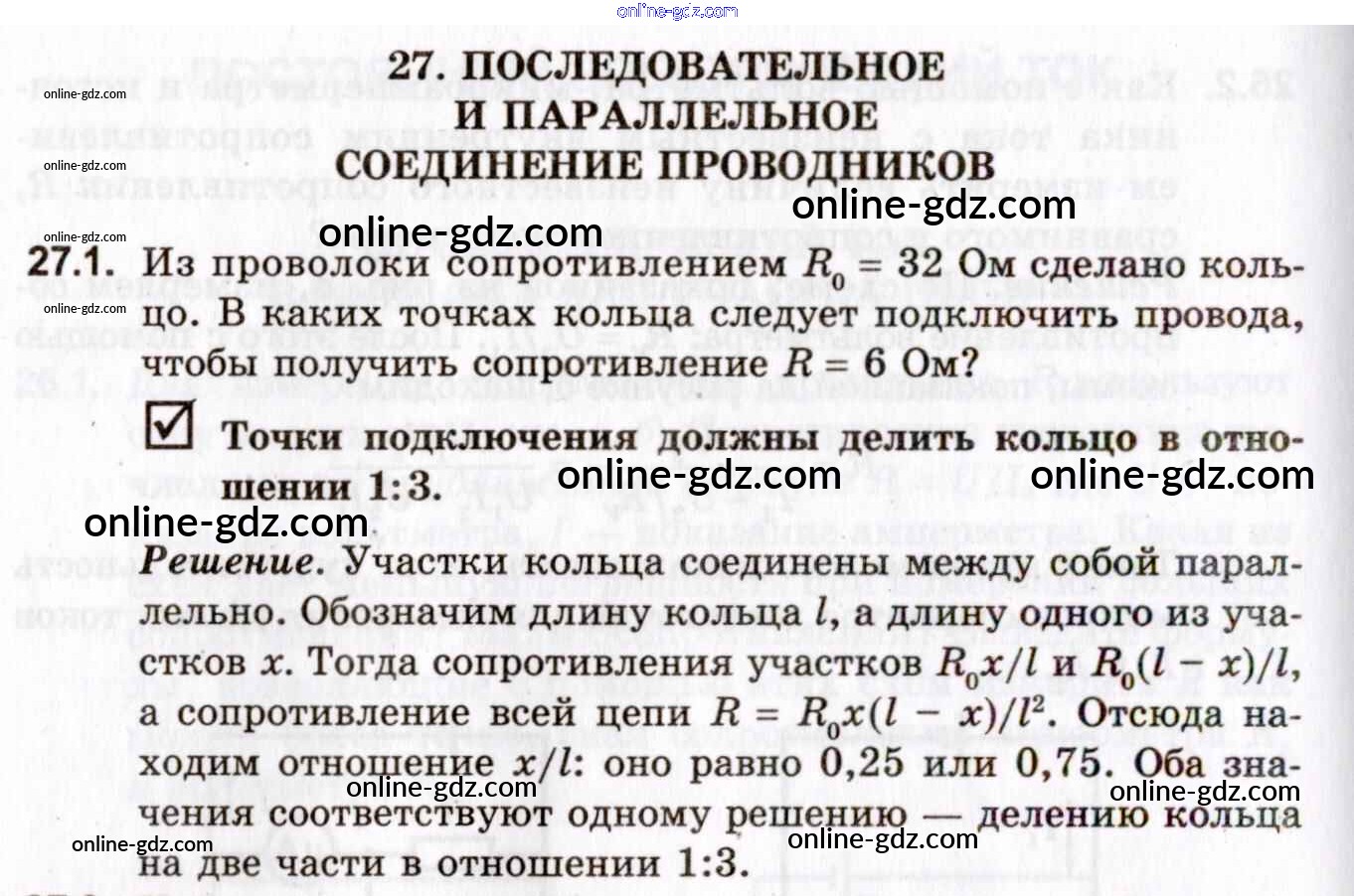 Готовые домашние задания по Физике за 10, 11 класс Задачник Гельфгат, Генденштейн Профильный уровень 2021 - 27. Последовательное и параллельное соединение проводников 27.1