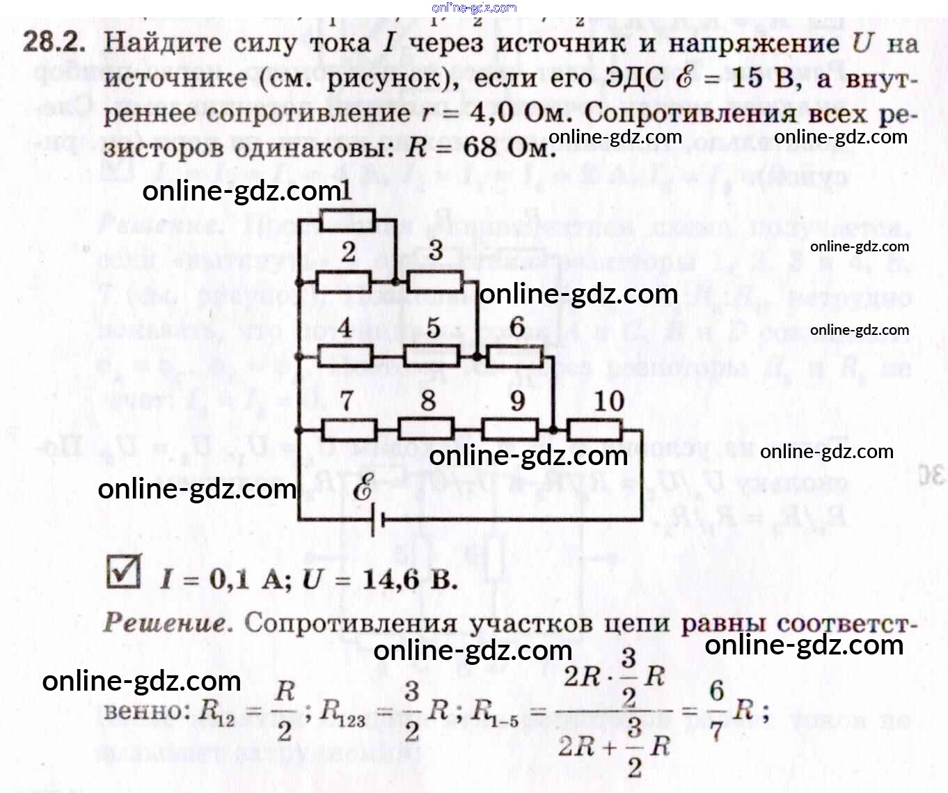 Готовые домашние задания по Физике за 10, 11 класс Задачник Гельфгат, Генденштейн Профильный уровень 2021 - 28. Электродвижущая сила. Закон Ома для полной цепи 28.2