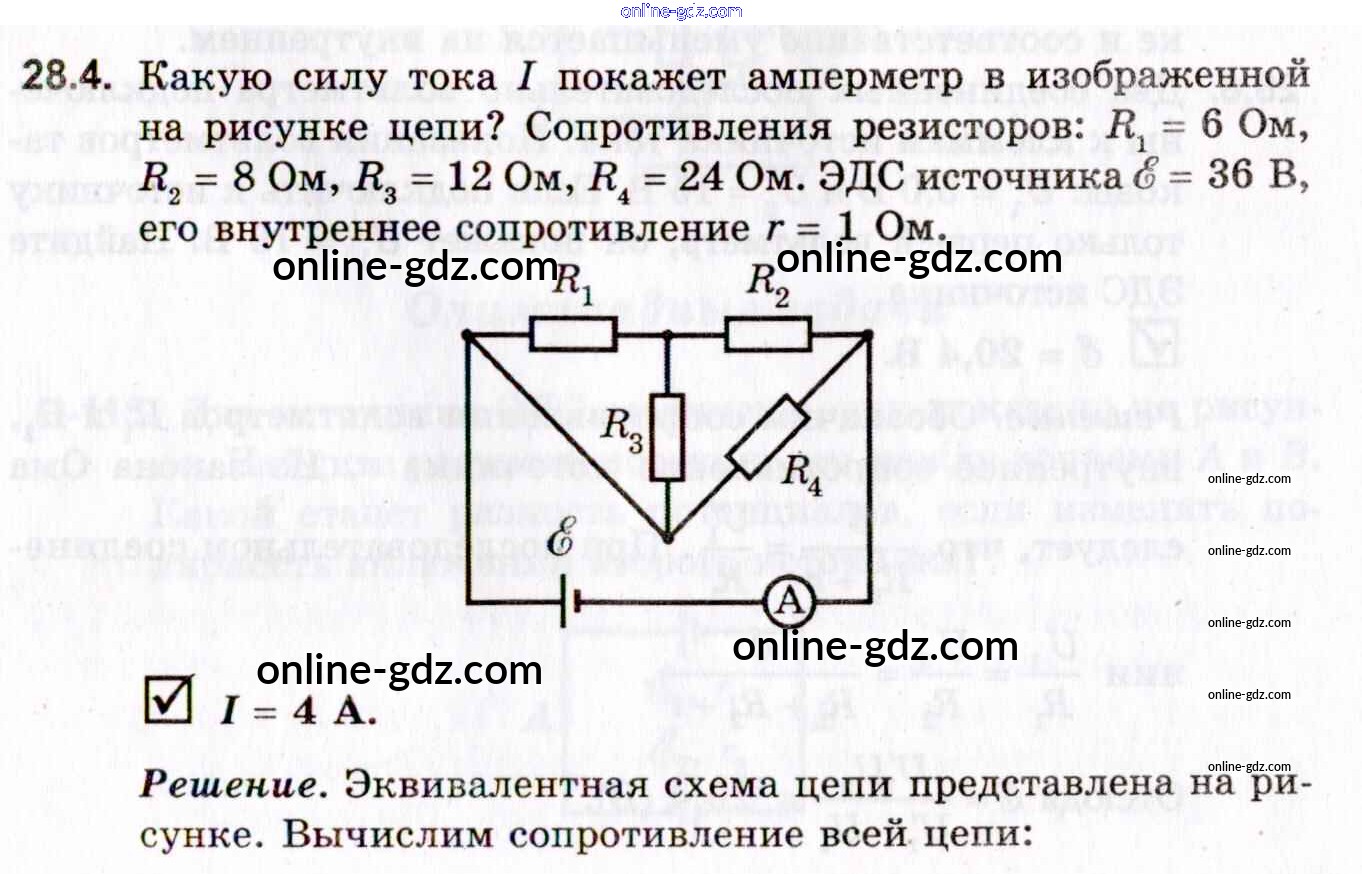 Готовые домашние задания по Физике за 10, 11 класс Задачник Гельфгат, Генденштейн Профильный уровень 2021 - 28. Электродвижущая сила. Закон Ома для полной цепи 28.4