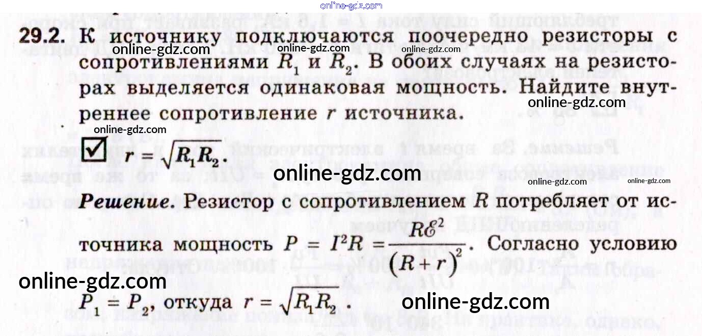 Готовые домашние задания по Физике за 10, 11 класс Задачник Гельфгат, Генденштейн Профильный уровень 2021 - 29. Работа и мощность тока. Закон Джоуля-Ленца 29.2