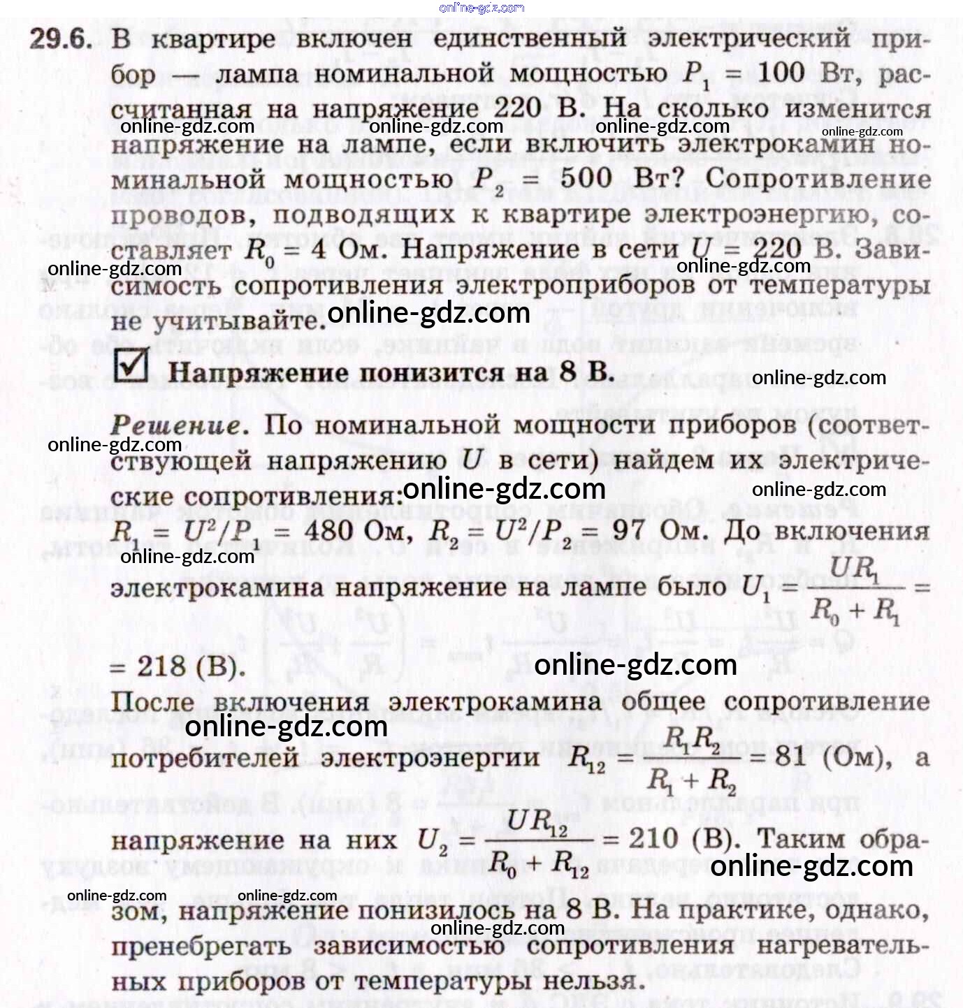 Готовые домашние задания по Физике за 10, 11 класс Задачник Гельфгат, Генденштейн Профильный уровень 2021 - 29. Работа и мощность тока. Закон Джоуля-Ленца 29.6