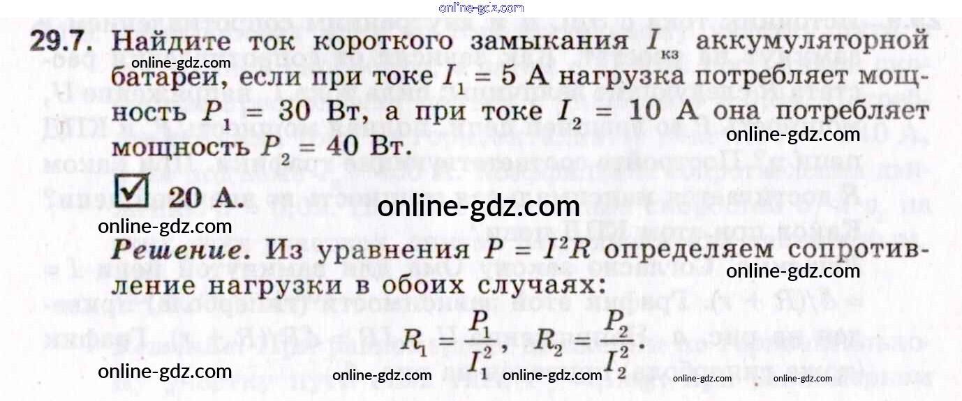Готовые домашние задания по Физике за 10, 11 класс Задачник Гельфгат, Генденштейн Профильный уровень 2021 - 29. Работа и мощность тока. Закон Джоуля-Ленца 29.7