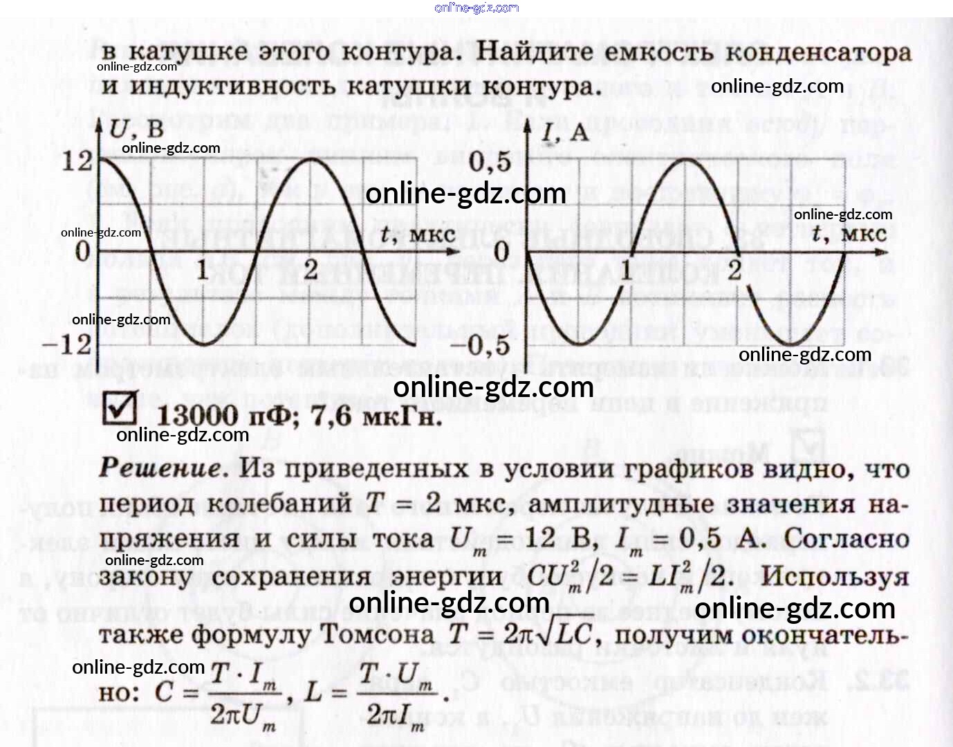 Готовые домашние задания по Физике за 10, 11 класс Задачник Гельфгат, Генденштейн Профильный уровень 2021 - 33. Свободные электромагнитные колебания. Переменный ток 33.3