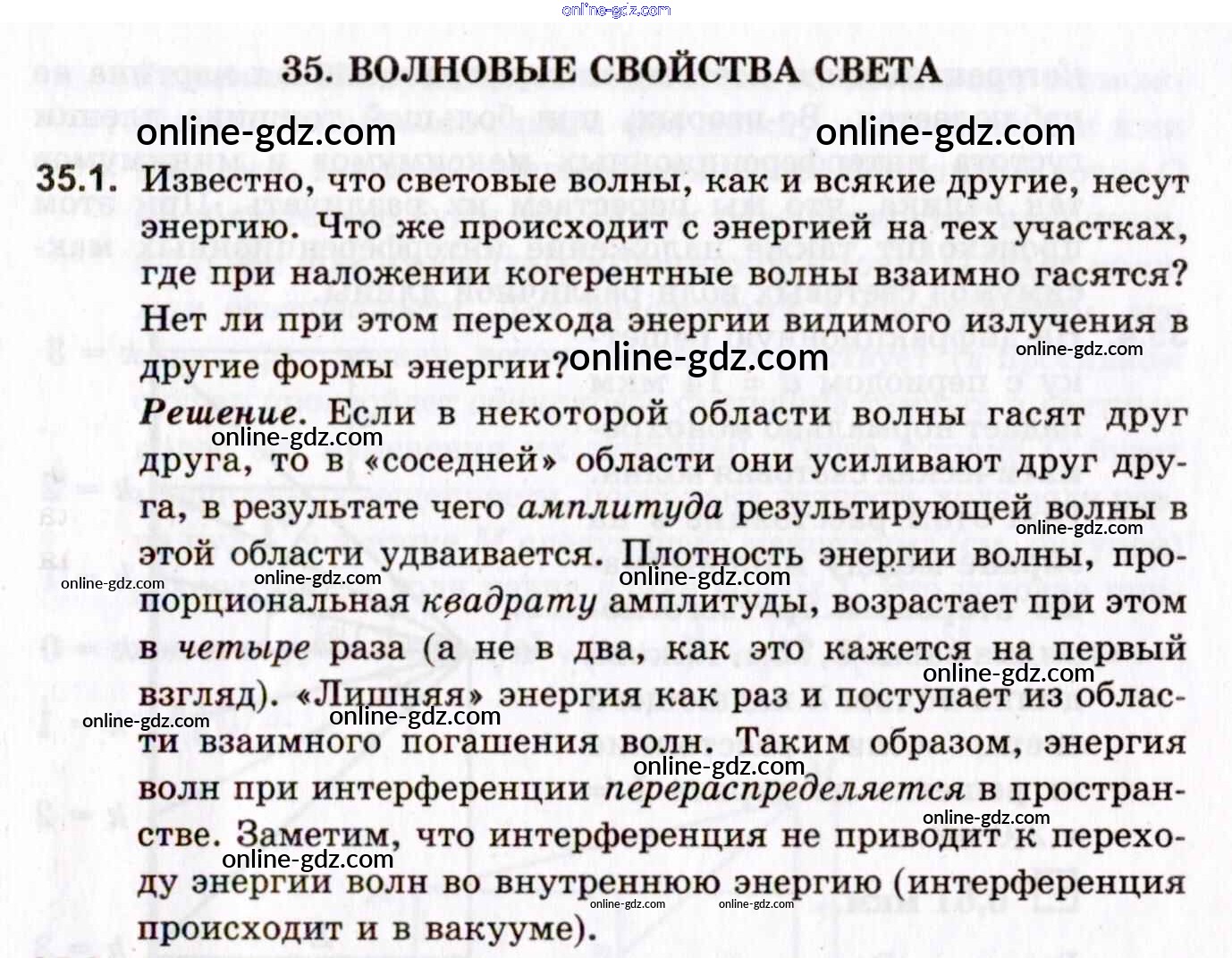 Готовые домашние задания по Физике за 10, 11 класс Задачник Гельфгат, Генденштейн Профильный уровень 2021 - 35. Волновые свойства света 35.1