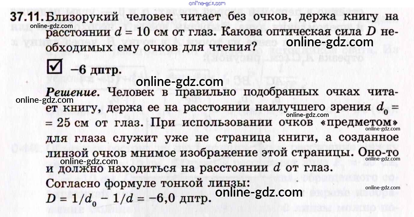 Готовые домашние задания по Физике за 10, 11 класс Задачник Гельфгат, Генденштейн Профильный уровень 2021 - 37. Геометрическая оптика 37.11