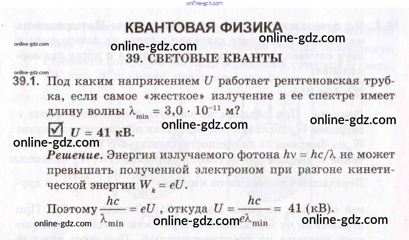 Готовые домашние задания по Физике за 10, 11 класс Задачник Гельфгат, Генденштейн Профильный уровень 2021 - 39. Световые кванты 39.1