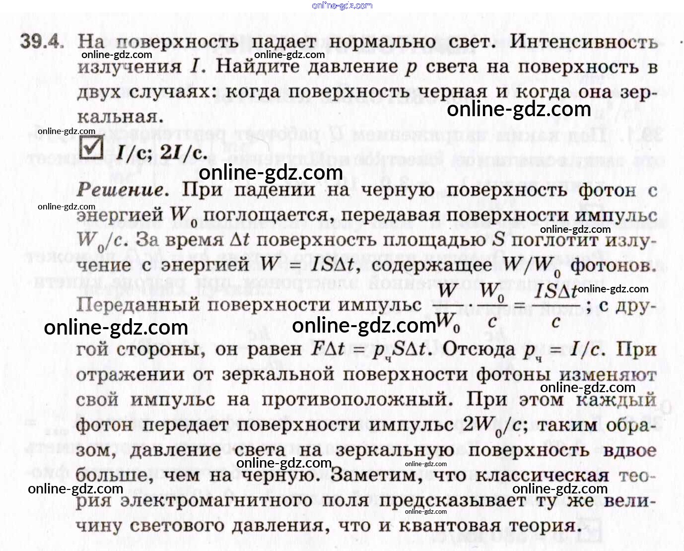 Готовые домашние задания по Физике за 10, 11 класс Задачник Гельфгат, Генденштейн Профильный уровень 2021 - 39. Световые кванты 39.4