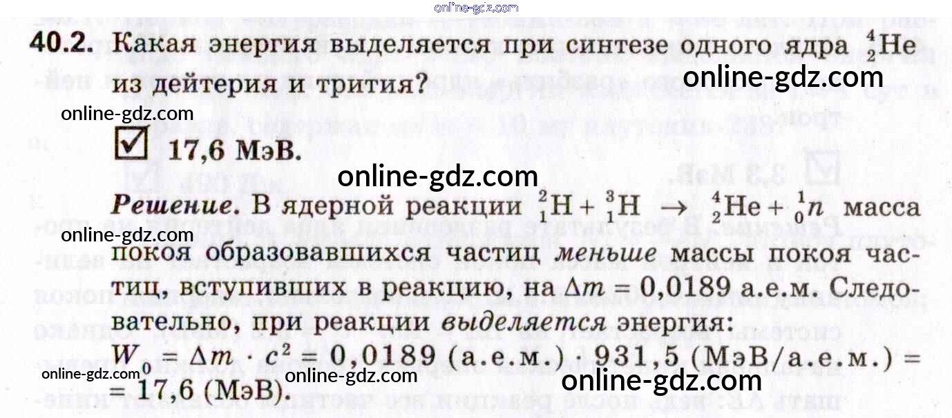 Готовые домашние задания по Физике за 10, 11 класс Задачник Гельфгат, Генденштейн Профильный уровень 2021 - 40. Физика атома и атомного ядра 40.2