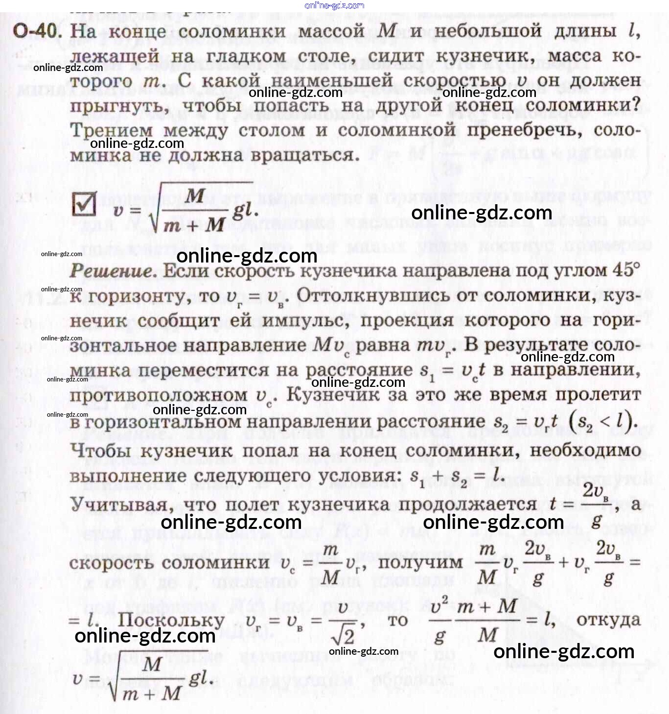 Готовые домашние задания по Физике за 10, 11 класс Задачник Гельфгат, Генденштейн Профильный уровень 2021 - Олимпиадные задачи О-40