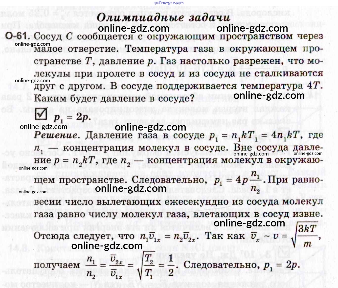 Готовые домашние задания по Физике за 10, 11 класс Задачник Гельфгат, Генденштейн Профильный уровень 2021 - Олимпиадные задачи О-61