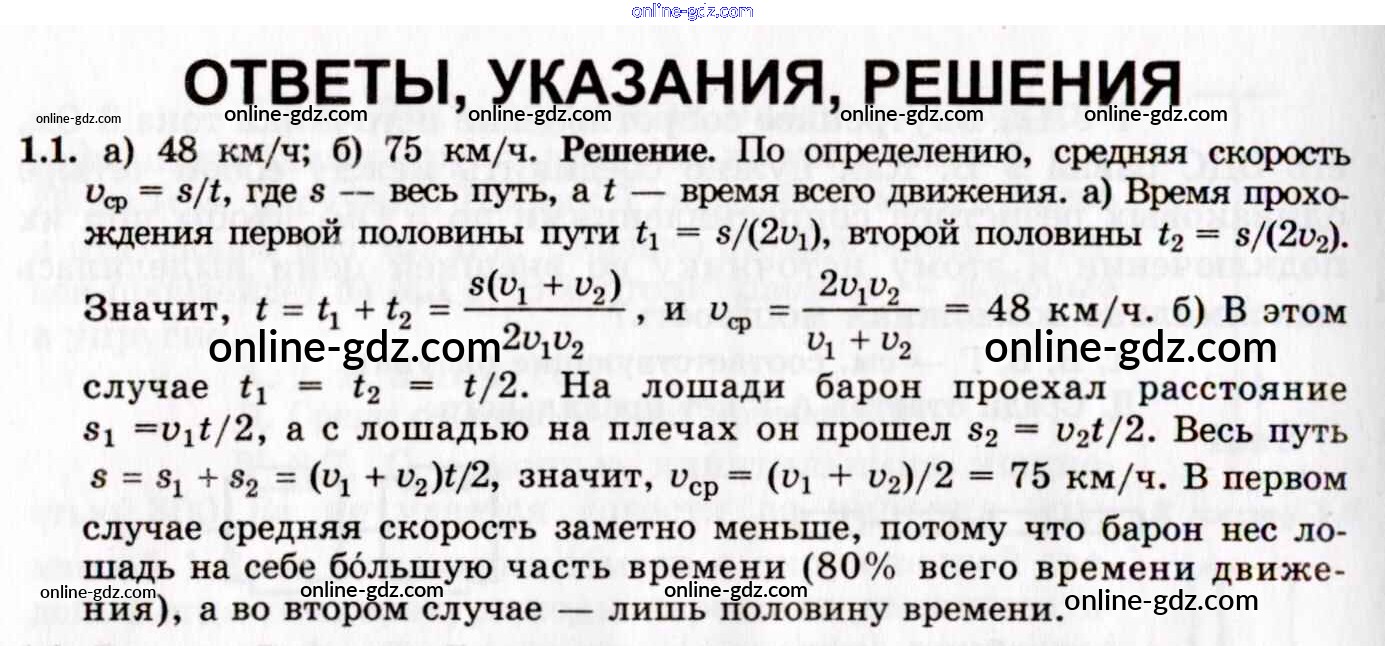 Готовые домашние задания по Физике за 8, 9, 10, 11 класс Задачник Генденштейн, Гельфгат 2021 - 1. Кинематика 1.1