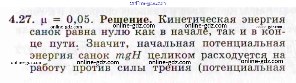 Готовые домашние задания по Физике за 8, 9, 10, 11 класс Задачник Генденштейн, Гельфгат 2021 - 4. Импульс, работа, энергия. Законы сохранения 4.27