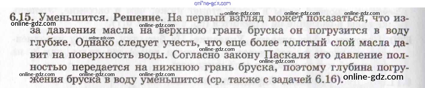 Готовые домашние задания по Физике за 8, 9, 10, 11 класс Задачник Генденштейн, Гельфгат 2021 - 6. Гидростатика и аэростатика 6.15
