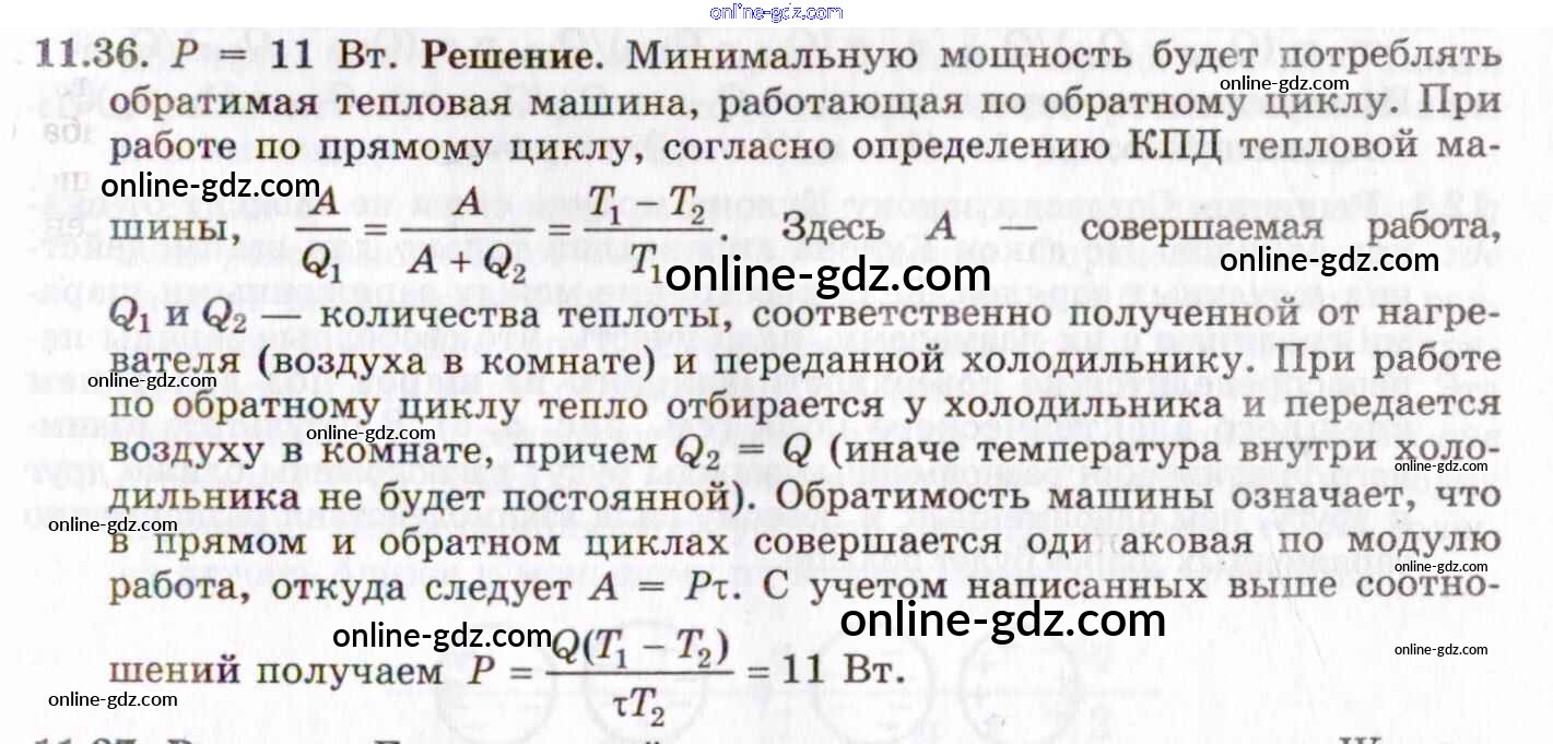 Готовые домашние задания по Физике за 8, 9, 10, 11 класс Задачник Генденштейн, Гельфгат 2021 - 11. Законы термодинамики 11.36