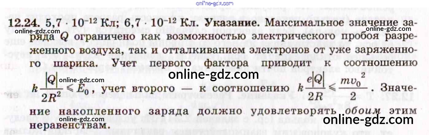 Готовые домашние задания по Физике за 8, 9, 10, 11 класс Задачник Генденштейн, Гельфгат 2021 - 12. Электростатика 12.24