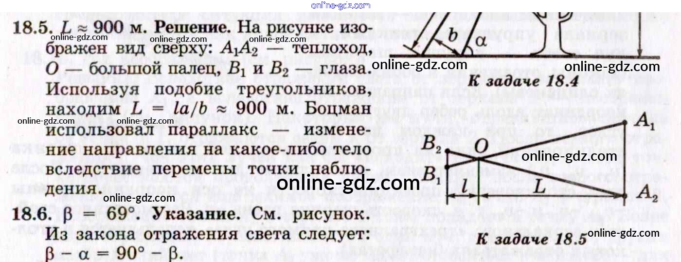 Готовые домашние задания по Физике за 8, 9, 10, 11 класс Задачник Генденштейн, Гельфгат 2021 - 18. Законы геометрической оптики 18.5