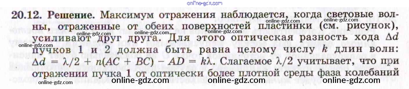 Готовые домашние задания по Физике за 8, 9, 10, 11 класс Задачник Генденштейн, Гельфгат 2021 - 20. Волновая оптика 20.12