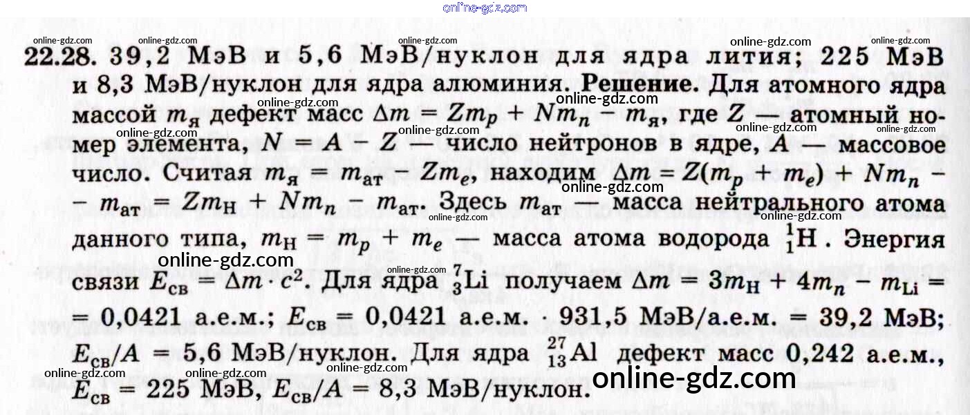 Готовые домашние задания по Физике за 8, 9, 10, 11 класс Задачник Генденштейн, Гельфгат 2021 - 22. Кванты, атомы, ядра, частицы 22.28