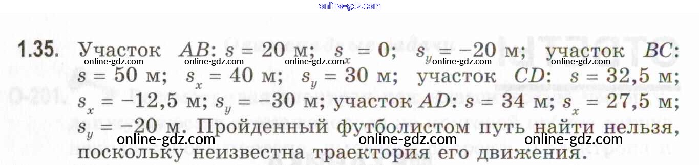 Готовые домашние задания по Физике за 10, 11 класс Задачник Кирик, Генденштейн Профильный уровень 2020 - 1. Материальная точка. Система отсчета. Путь и перемещение 1.35
