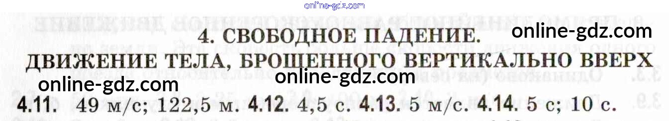 Готовые домашние задания по Физике за 10, 11 класс Задачник Кирик, Генденштейн Профильный уровень 2020 - 4. Свободное падение. Движение тела, брошенного вертикально вверх или под углом к горизонту 4.11
