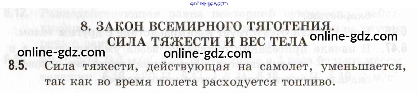 Готовые домашние задания по Физике за 10, 11 класс Задачник Кирик, Генденштейн Профильный уровень 2020 - 8. Закон всемирного тяготения. Сила тяжести и вес тела 8.5