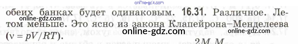 Готовые домашние задания по Физике за 10, 11 класс Задачник Кирик, Генденштейн Профильный уровень 2020 - 16. Уравнение состояния идеального газа 16.31