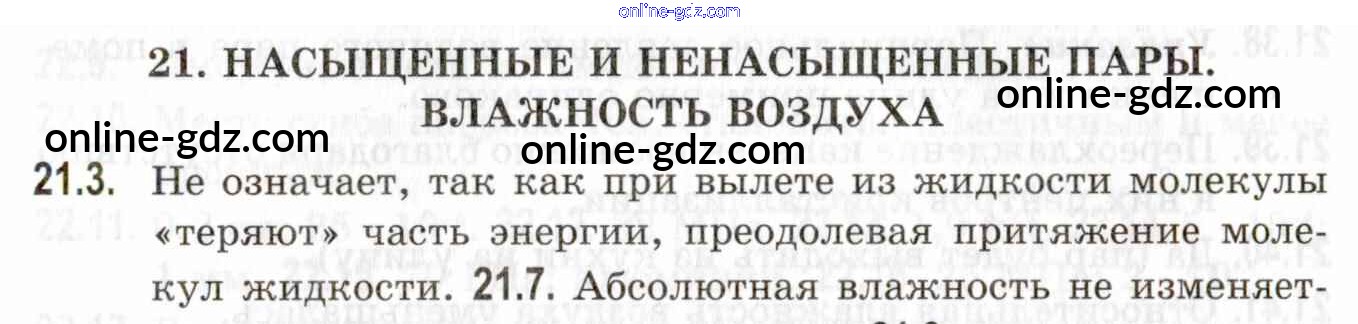 Готовые домашние задания по Физике за 10, 11 класс Задачник Кирик, Генденштейн Профильный уровень 2020 - 21. Насыщенные и ненасыщенные пары. Влажность воздуха 21.3