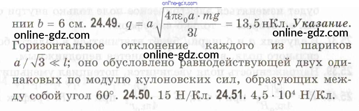 Готовые домашние задания по Физике за 10, 11 класс Задачник Кирик, Генденштейн Профильный уровень 2020 - 24. Электрический заряд. Закон Кулона. Напряженность электрического поля 24.49