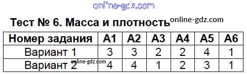 Готовые домашние задания по Физике за 7 класс Контрольно-измерительные материалы (КИМ) Бобошина 2014 - Тесты Тест №6. Масса и плотность
