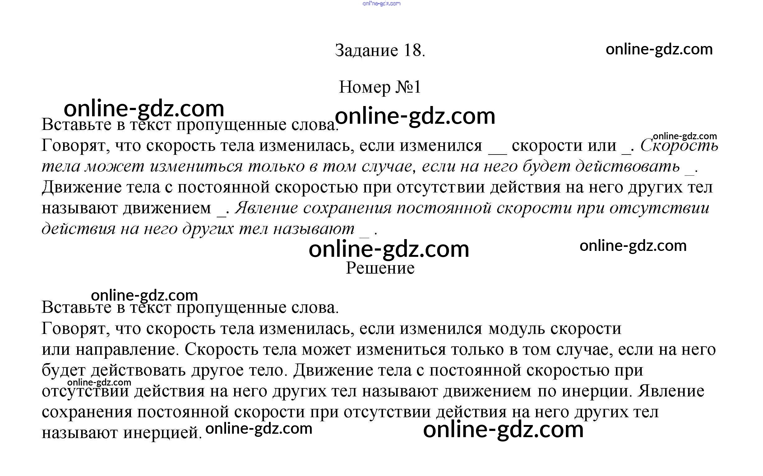 Готовые домашние задания по Физике за 7 класс Рабочая тетрадь Ханнанова, Ханнанов Вертикаль 2016 - Задание 18 1