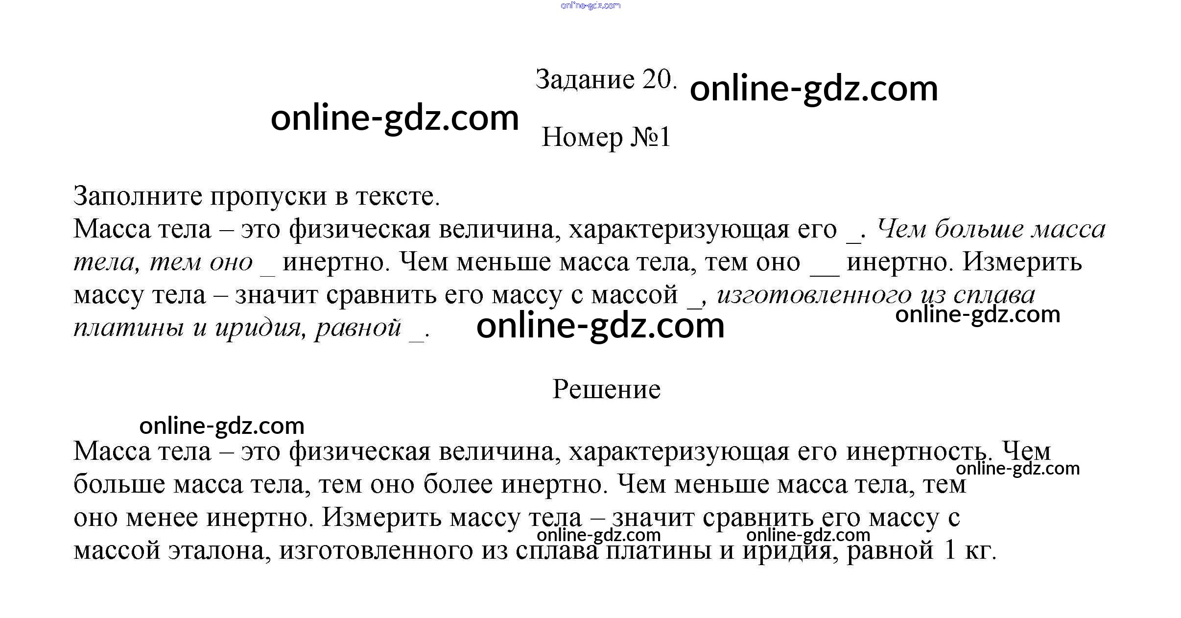 Готовые домашние задания по Физике за 7 класс Рабочая тетрадь Ханнанова, Ханнанов Вертикаль 2016 - Задание 20 1