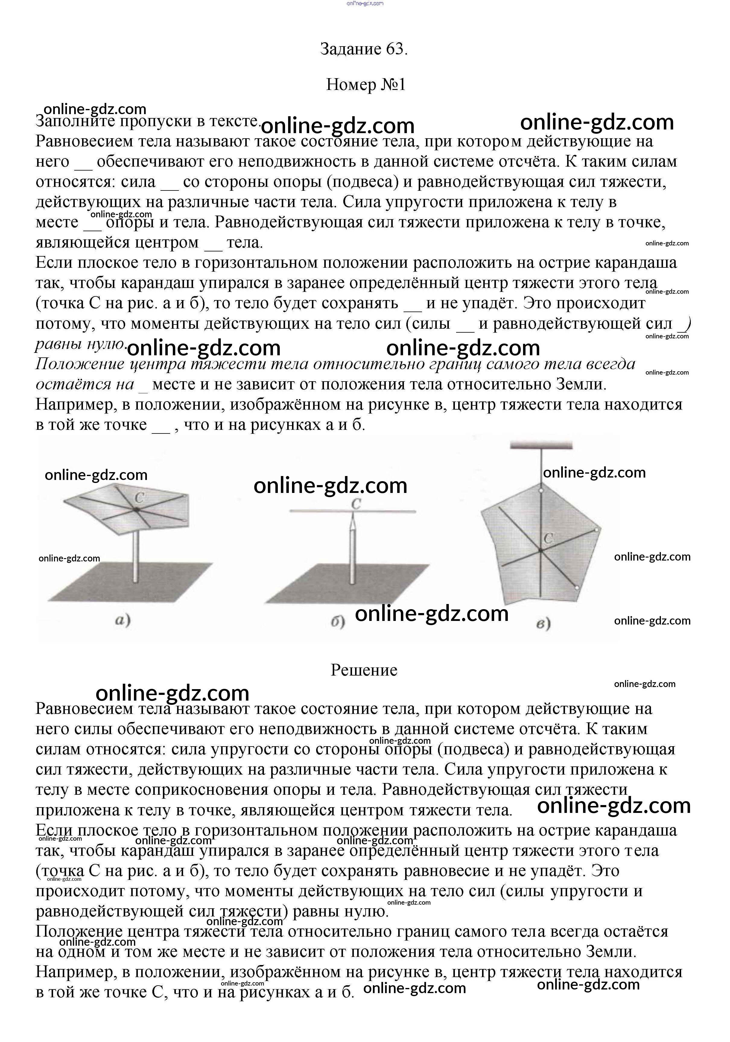 Готовые домашние задания по Физике за 7 класс Рабочая тетрадь Ханнанова, Ханнанов Вертикаль 2016 - Задание 63 1