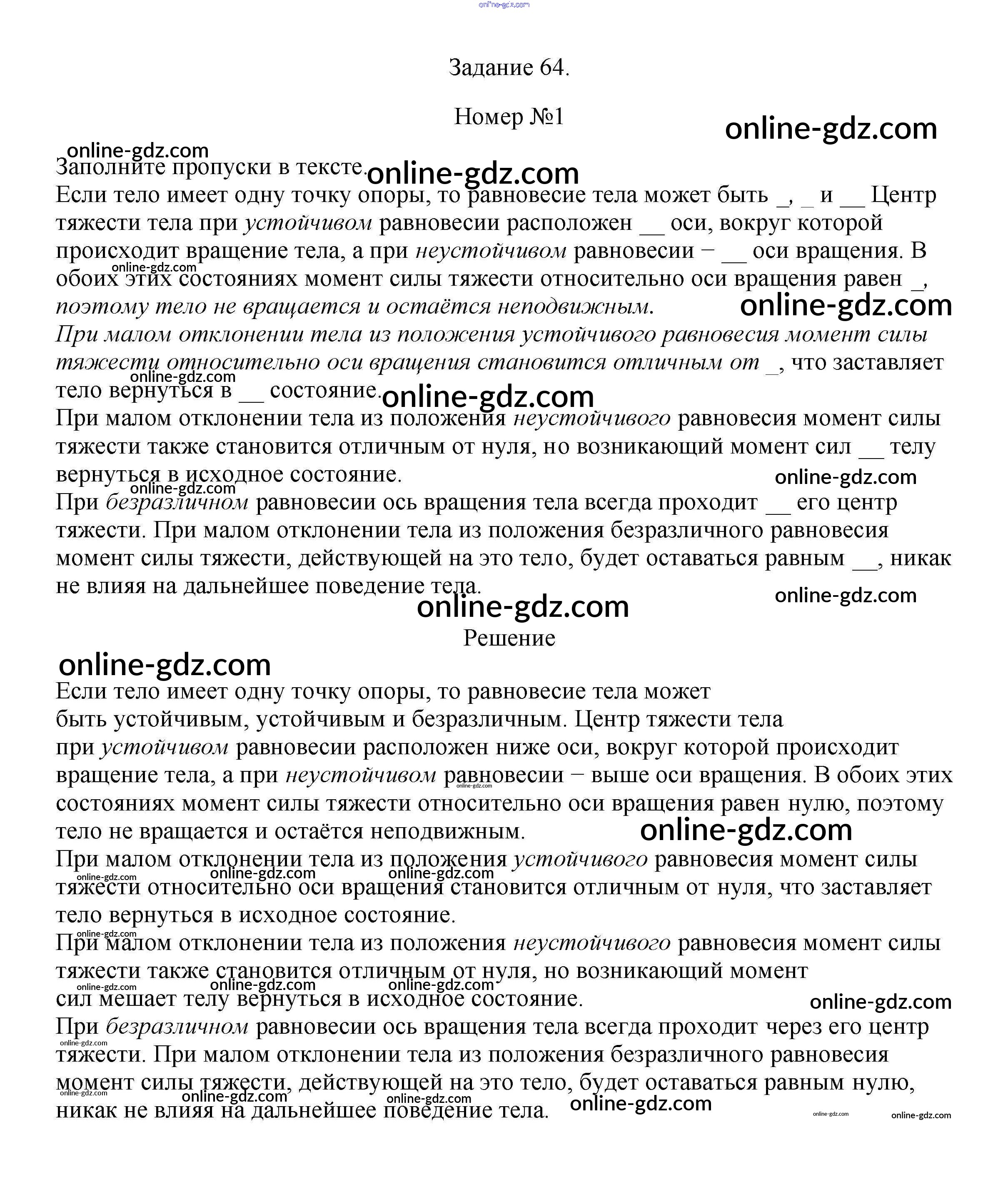 Готовые домашние задания по Физике за 7 класс Рабочая тетрадь Ханнанова, Ханнанов Вертикаль 2016 - Задание 64 1