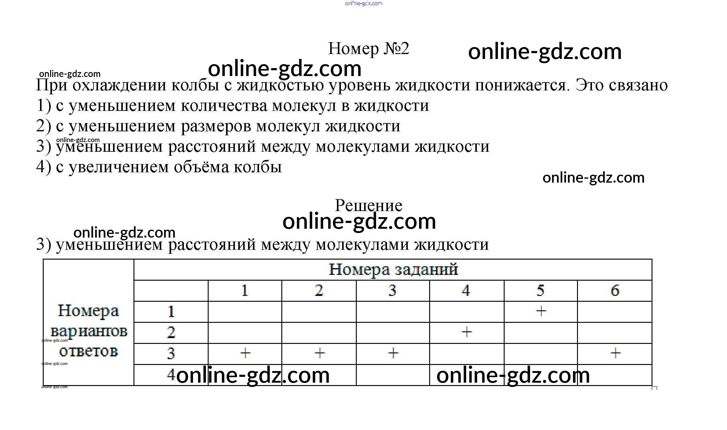 Готовые домашние задания по Физике за 7 класс Рабочая тетрадь Ханнанова, Ханнанов Вертикаль 2016 - Тренировочный тест 1 "Строение вещества" Тесты 2
