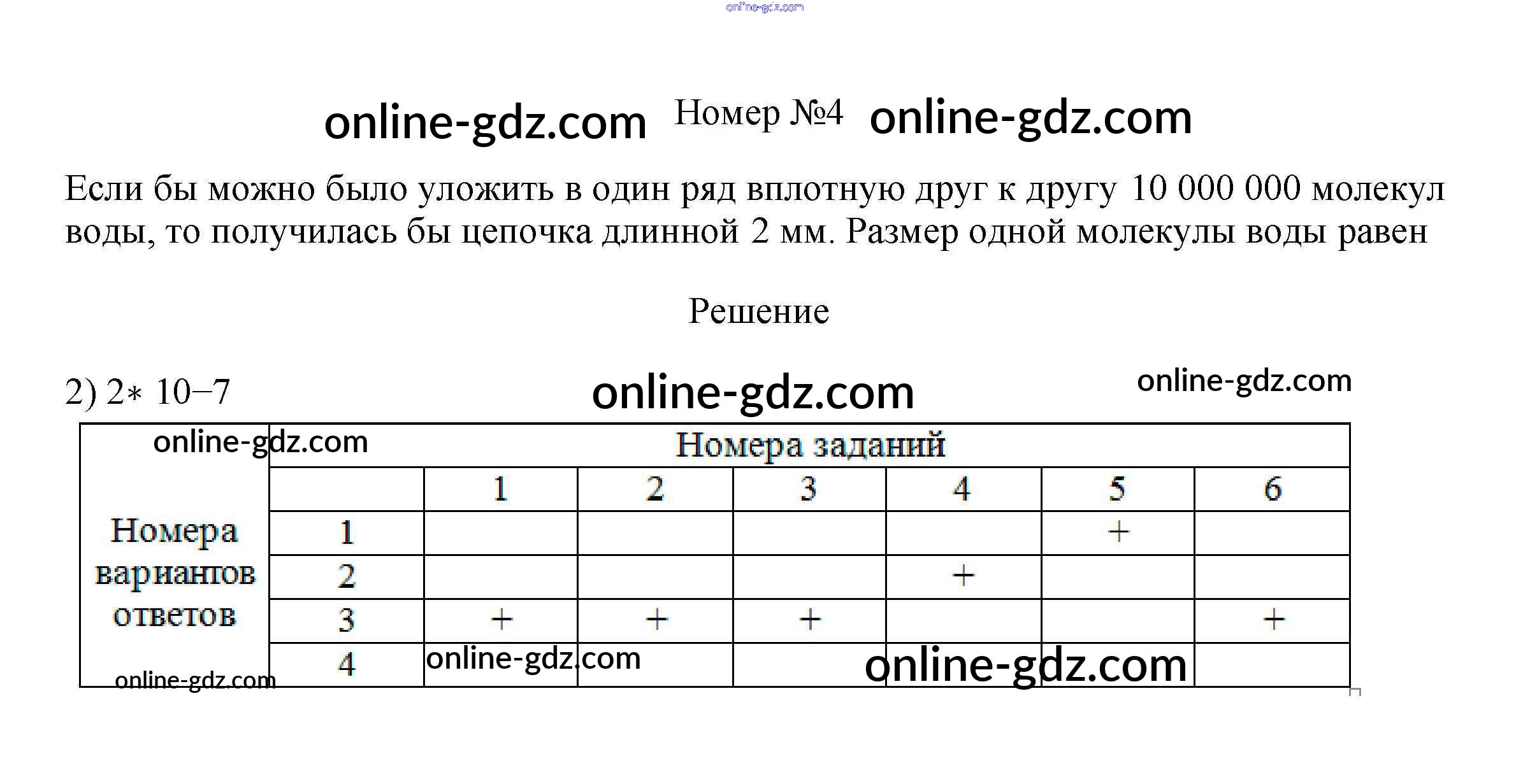 Готовые домашние задания по Физике за 7 класс Рабочая тетрадь Ханнанова, Ханнанов Вертикаль 2016 - Тренировочный тест 1 "Строение вещества" Тесты 4