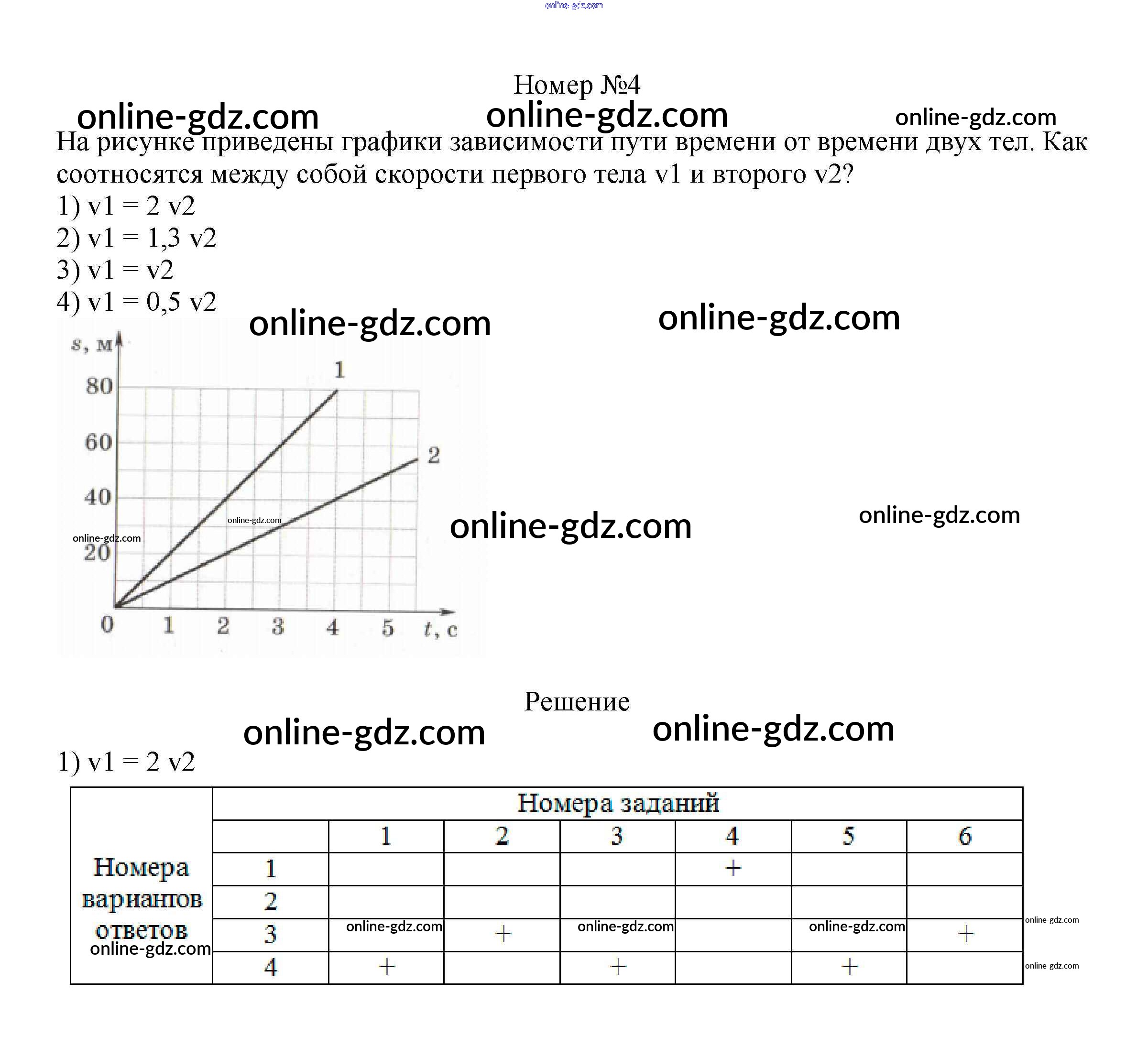 Готовые домашние задания по Физике за 7 класс Рабочая тетрадь Ханнанова, Ханнанов Вертикаль 2016 - Тренировочный тест 2 "Характеристики движения. Скорость" Тесты 4