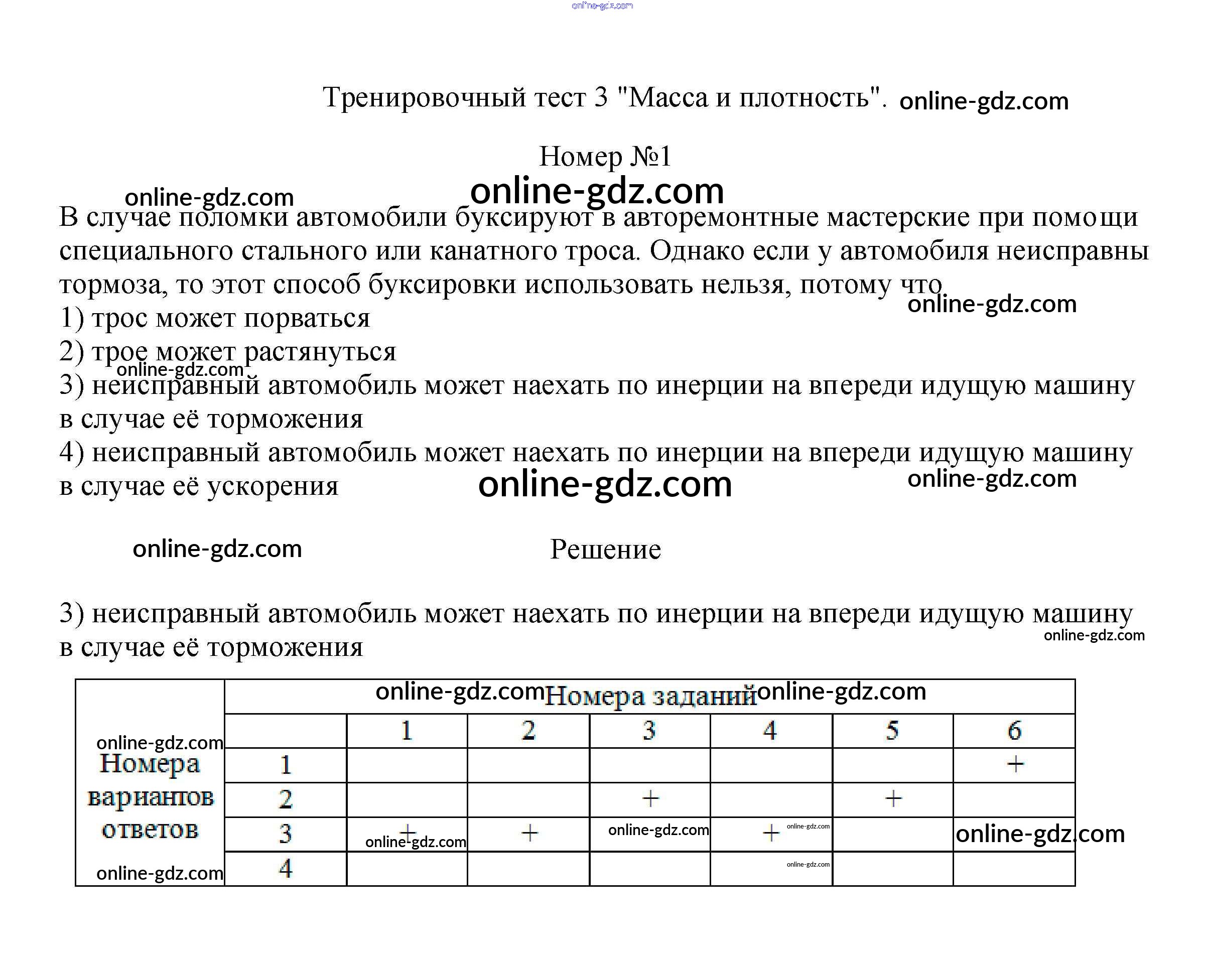 Готовые домашние задания по Физике за 7 класс Рабочая тетрадь Ханнанова, Ханнанов Вертикаль 2016 - Тренировочный тест 3 "Масса и плотность" Тесты 1