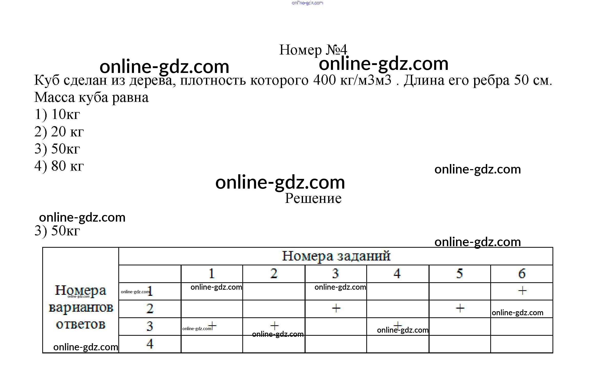 Готовые домашние задания по Физике за 7 класс Рабочая тетрадь Ханнанова, Ханнанов Вертикаль 2016 - Тренировочный тест 3 "Масса и плотность" Тесты 4