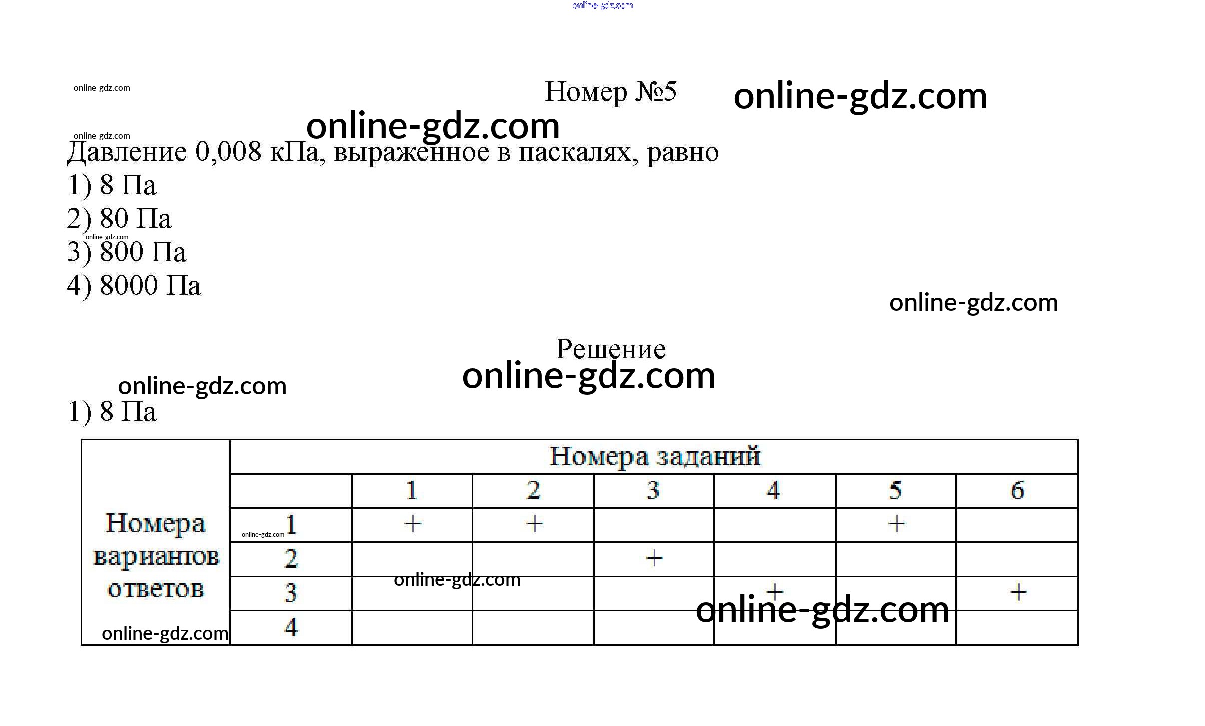 Готовые домашние задания по Физике за 7 класс Рабочая тетрадь Ханнанова, Ханнанов Вертикаль 2016 - Тренировочный тест 5 "Давление твердого тела" Тесты 5