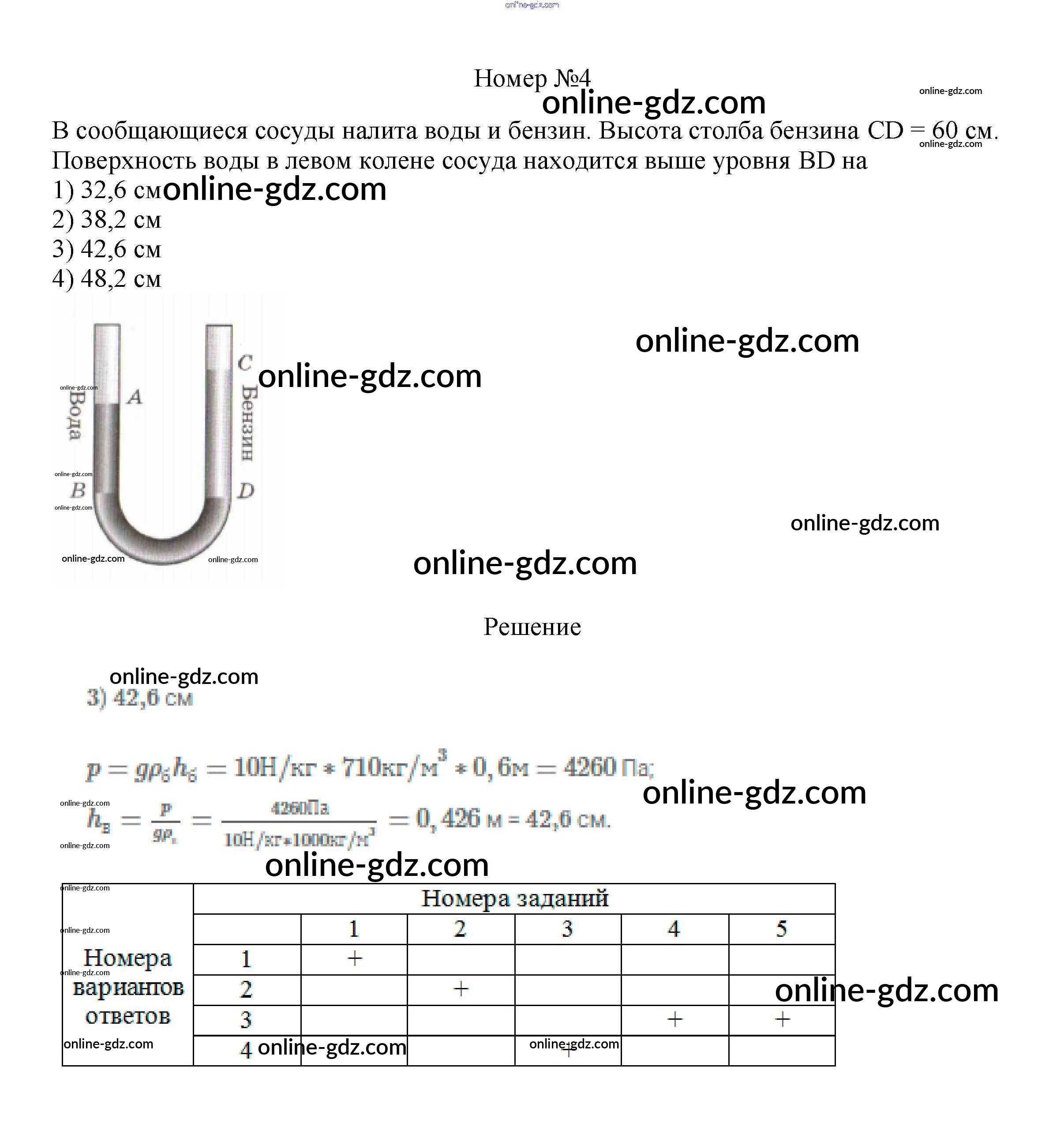 Готовые домашние задания по Физике за 7 класс Рабочая тетрадь Ханнанова, Ханнанов Вертикаль 2016 - Тренировочный тест 6 "Давление газов и жидкостей" Тесты 4
