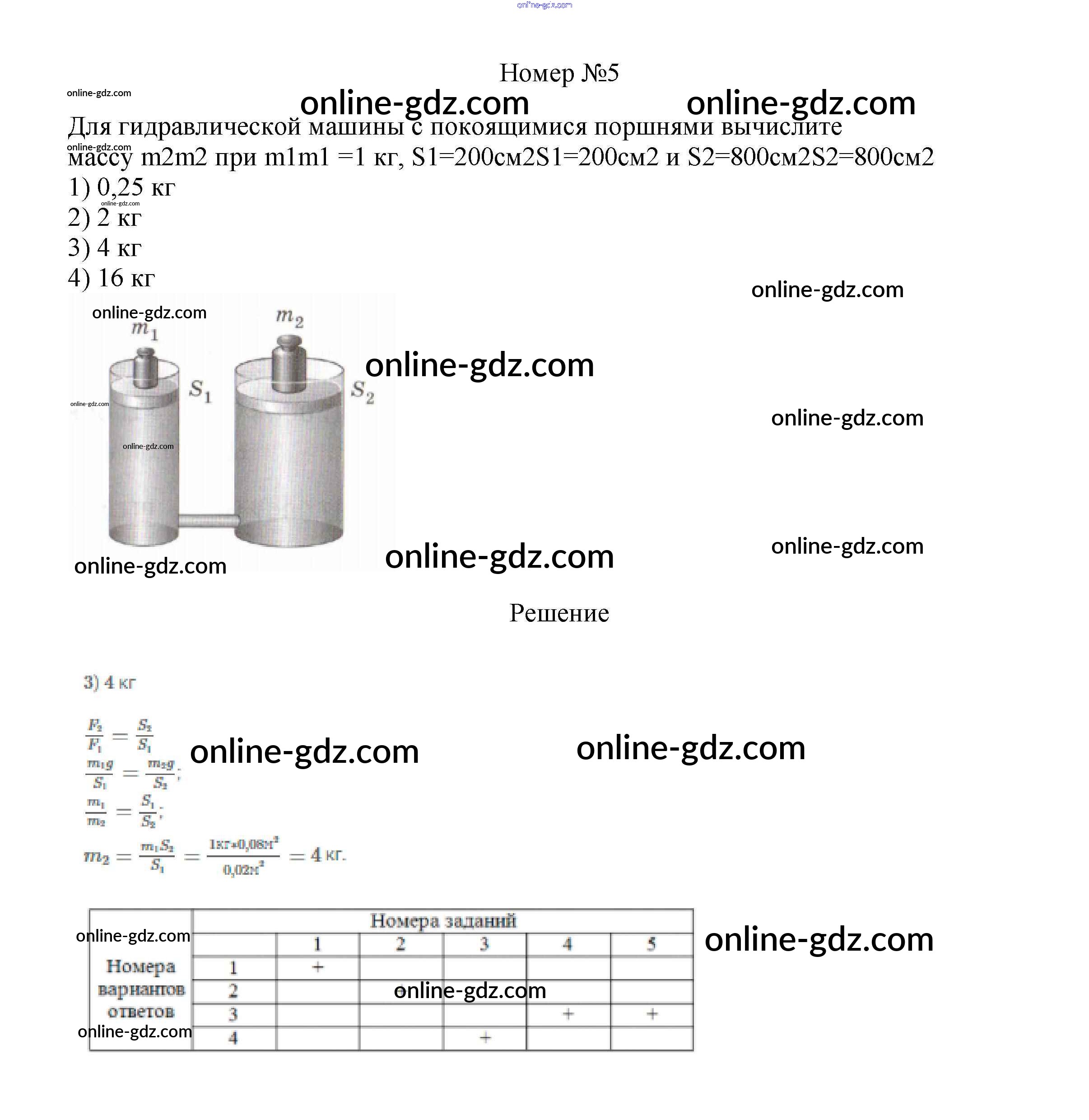 Готовые домашние задания по Физике за 7 класс Рабочая тетрадь Ханнанова, Ханнанов Вертикаль 2016 - Тренировочный тест 6 "Давление газов и жидкостей" Тесты 5
