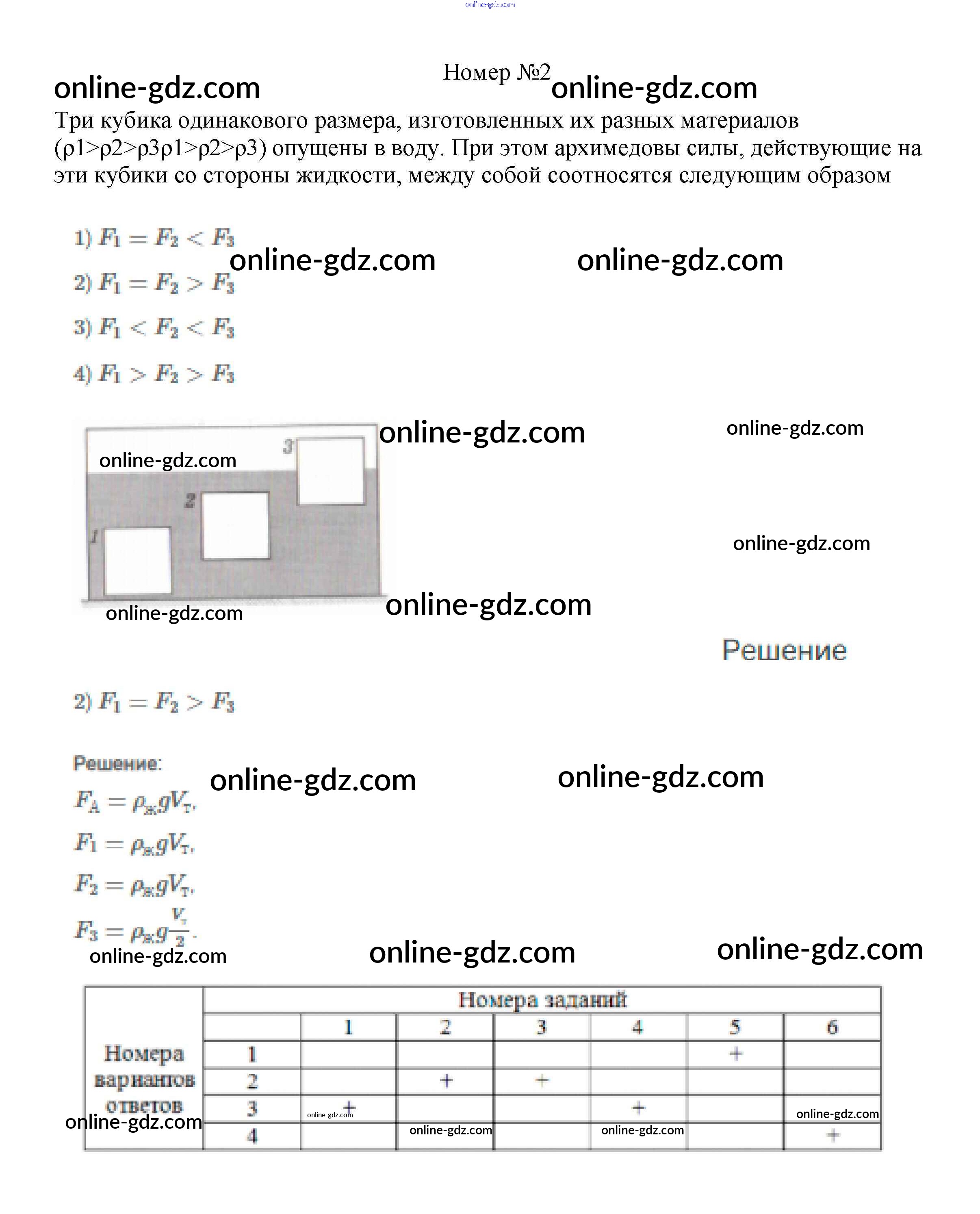 Готовые домашние задания по Физике за 7 класс Рабочая тетрадь Ханнанова, Ханнанов Вертикаль 2016 - Тренировочный тест 7 "Закон Архимеда" Тесты 2