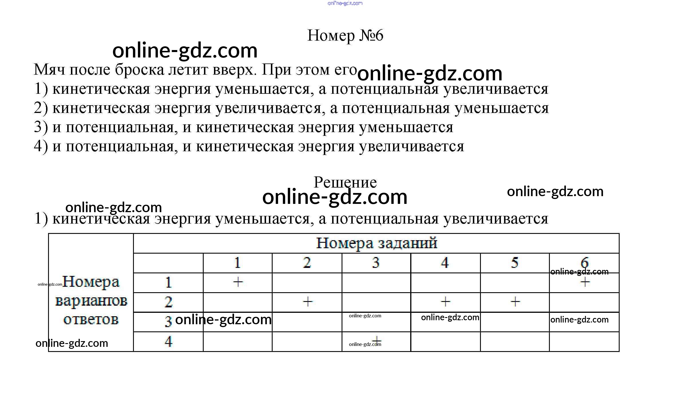 Готовые домашние задания по Физике за 7 класс Рабочая тетрадь Ханнанова, Ханнанов Вертикаль 2016 - Тренировочный тест 8 "Работа, мощность, энергия. Простые механизмы" Тесты 6